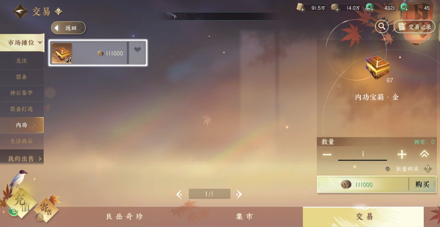 铜钱:比较日常的一种免费货币,通过平时打副本刷任务都可以获取,该货币同时也能够作为玩家之间交易的媒介,很多高级功法和道具都可以放到拍卖行拍卖,拍卖之后会有其他玩家出铜币来购买,同样的,你有什么需要也可以用自己的这些铜币去拍其他玩家放上去的物品。