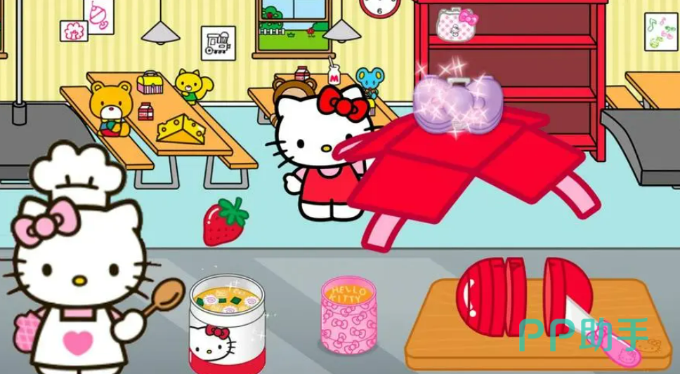 这款游戏里的凯蒂猫是一名非常厉害的厨师,它会用各种魔法烹饪美味的菜肴。玩家在游戏里的任务就是给凯蒂猫准备各种食材,小小的凯蒂猫会根据食材的不同烹饪好吃的食物,这款游戏的设定非常像是过家家游戏,不会烹饪的小伙伴可以在游戏里练习做菜,小凯蒂猫就是你最好的老师。本作有许多可以互动的场景,你可以与白色的凯蒂猫一起合作烹饪美食。