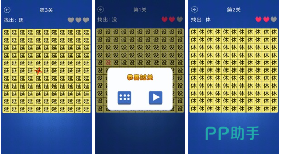 如果说你玩腻了传统的找不同游戏都好想要得到一些新鲜的体验的话,那么这款以文字为主题去创造的找不同手游绝对可以满足你的需求!首先是游戏不是以图片为内容去开展的,而是会给出我们一整张屏幕的文字,然后玩家就需要挑出那一个单独不同的文字才算顺利过关,这样的麻烦难度是有点高,但游戏也会给玩家三次选择机会哦!