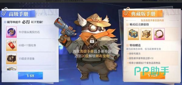其价格为68元,打开可以获得牛仔猫头鹰契约石,60级的强化券,11张55级的史诗装备,还有粉色装备徽记袋。这其中,牛仔猫头鹰它是游戏中一个比较强的宠物了,而且在外形设计上带着一丝可爱又有一种帅酷的感觉,值得推荐。