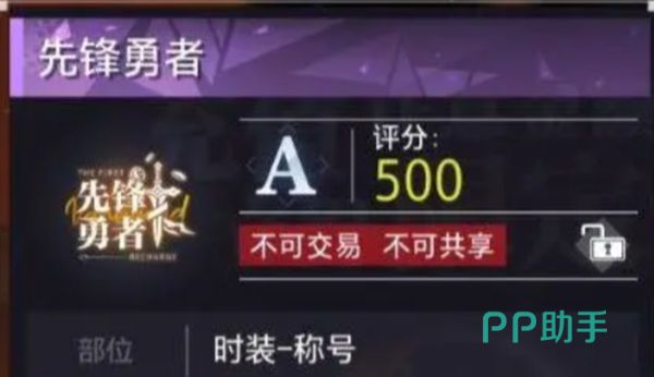 先锋勇者称号是一个A级称号,不能进行交易以及共享,将它装备到角色身上,可以让角色的力量,智力,体质,敏捷以及精神分别各加40,附加属性可以将角色的物理暴击,魔法暴击各增加3%,移动速度增加2%,冒险金币掉落增加1%。