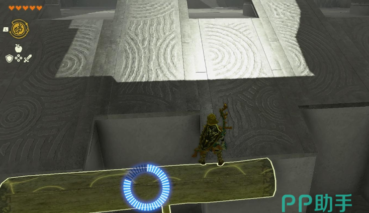 不过好在制作方赋予了主角余料建造的功能,加上究极手可以隔空抓取物品。将三个原木通过技能抓取粘合在一起,就可以拼成一个木筏,然后再放置到水中。接着跳上去然后使用倒转乾坤的能力,就可以来到上层平台。