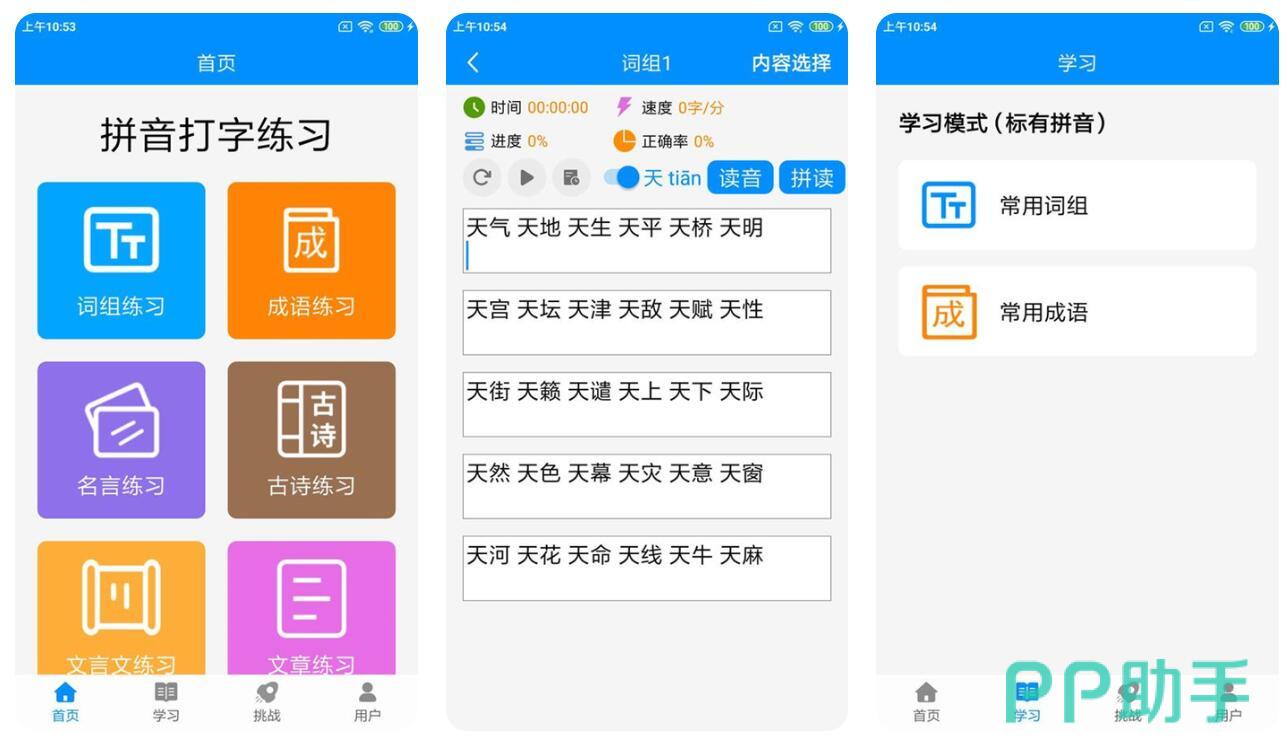 想要快速让自己的拼音能力得到提升吗?这款软件即可满足各位的愿望,丰富的学习方式当中还提供了针对词语、名言、古诗等内容的教学。用户可以根据爱好来进行选择,不知不觉当中就会学习到更多有意思的拼音知识。