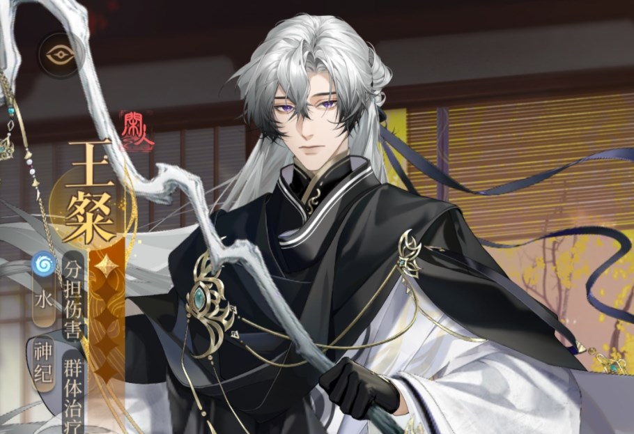 王粲,也是白毛或者说银发,超强的奶辅类角色,一手“链子”将上阵角色生命值绑定共同承伤同时还有少许治疗 ,能极大的降低游戏过关门槛,有了他不用太高的练度也能打得过一些关卡,甚至很多攻略的阵容推荐还要分为有无王粲版本的。