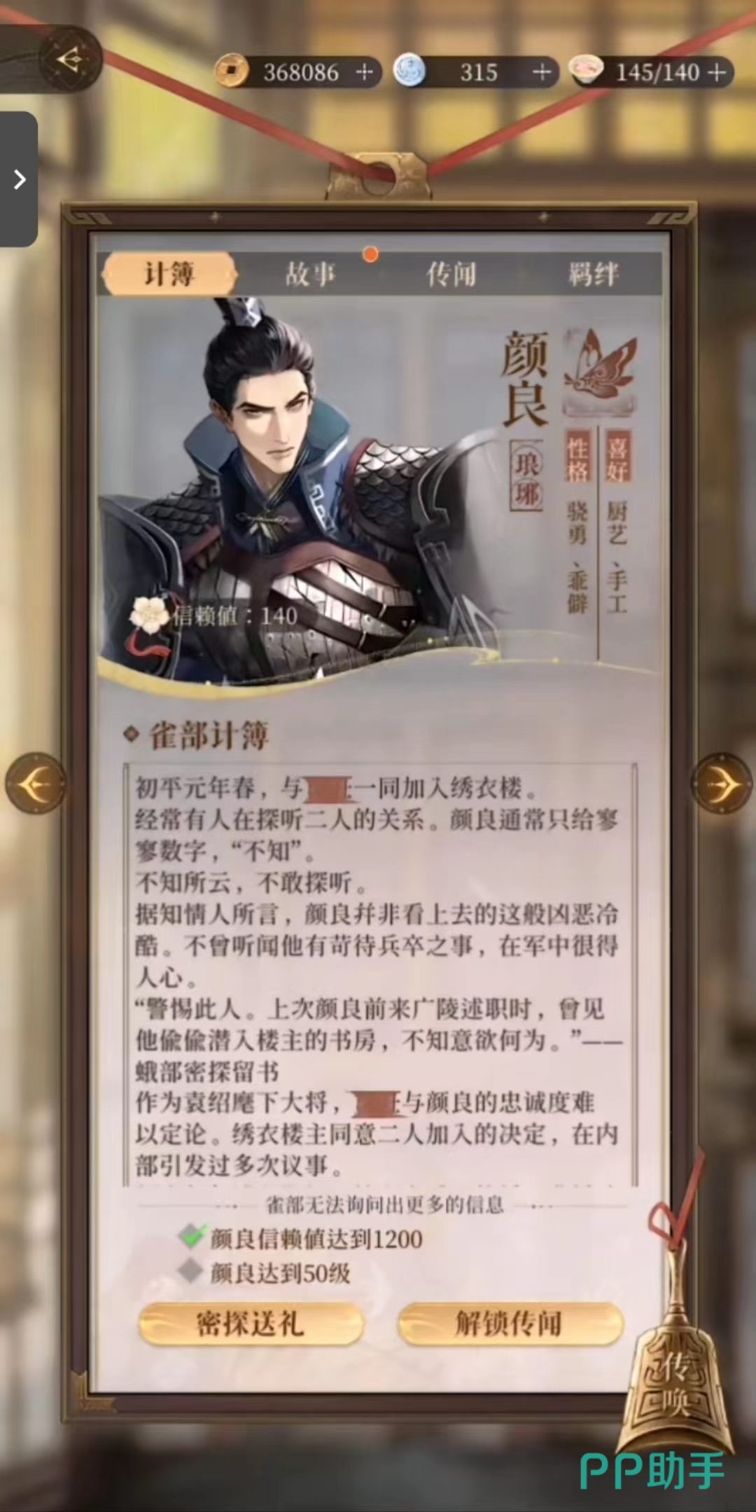 中期非常强势的书属性前排角色,可作为郭解的替身。颜良可以为己方成员提供高额的护盾,他和郭解具有同样的嘲讽技,因此有着极强的保护能力。单卡方面可以选择进入防御状态,大大提升自己的抗性,为队友承担高额的伤害。并且其护盾强度是和攻击力挂钩的,攻击力越高护盾越厚,培养攻击力可以做到两全其美,进可攻,退可守。另外颜良作为坦克,无需充当队长即可发挥自己的功能性,站位非常灵活。