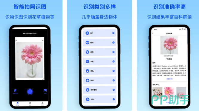 这款软件可以识图,识物,识昆虫以及花朵等等,同时还能进行文字识别,结果一复制,还可以手动编辑,智慧识图利用了全新的智能技术,只需要拿起手机任意拍一下,将会依托数据来为大家匹配识别到详细信息,可以选择精准识别,植物识别或者花草识别等等。