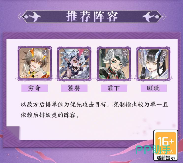 在阵容上如果有饕餮上场的话,这个阵容可以主打是高攻击+高暴击应战群攻的阵容属性,那么阵容中除了饕餮之外还需要具备一定辅助能力的攻击妖灵和有恢复能力的妖灵。这个阵容可以参考:饕餮+穷奇+霸下+睚眦,纯荒队。饕餮和穷奇是固定搭配的阵容,一个攻一个防,另外两个也是攻防组合,这个阵容续航能力强,对于敌方的后排狠狠压制住,方便稳定输出,不足的得分也很明显就是缺少爆发力,如果对方一上来就残暴输出,那么这个阵容是很招架的。