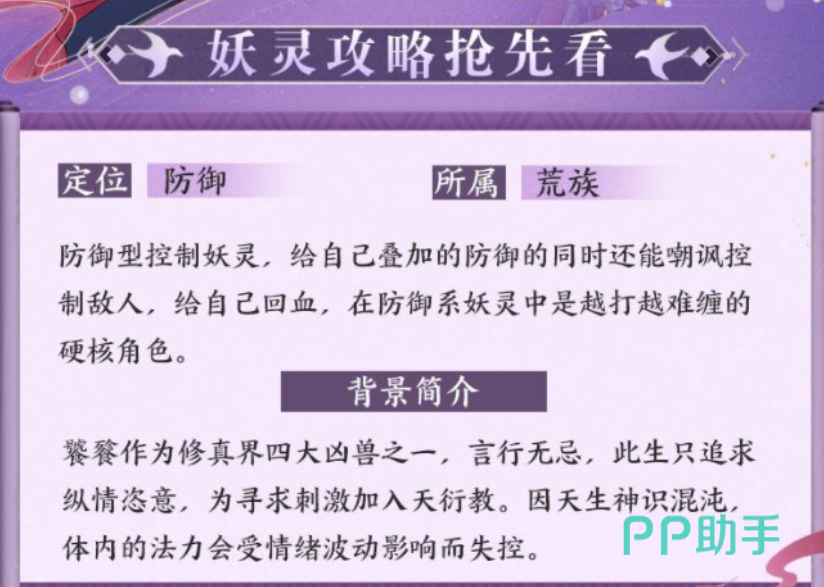 以上就是我的御剑日记饕餮怎么样的内容分享了,荒族中出彩的妖灵还是很多的,但是输出上还是比不上天族的青龙朱雀等,那么作为荒族中的控制系辅助妖灵定位的饕餮就会因为辅助定位而出彩了,可以作为混队中能排得上前列的控制系辅助角色。