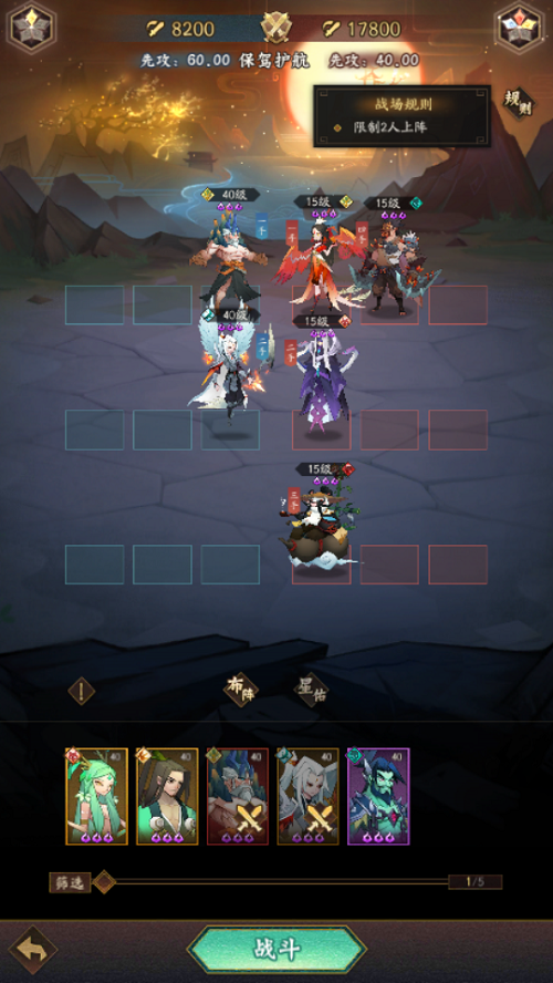 新手玩家前期游戏开荒,不知道怎么去组成自己的阵容。可以考虑使用一下黑白无常【黑白无常近战远战都是非常强悍的,还可以召唤亡灵攻击】,女娲【强回血,复活队友】,沉香【利用大范围性质攻击平A】,韩湘子和青龙【主输出攻击手】这一套阵容。(黑白无常可以换成傀儡or仙姑,阵容都是完整的)