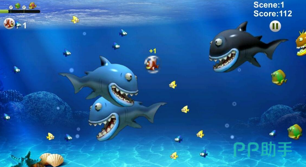 这个游戏设定在海洋中,你的任务是在不断增长的鱼类食物链中求生存。通过不停的进食,你可以生长得越来越大,然后吞掉那些比你小的鱼类。但是,你需要注意那些更加庞大的鱼类,他们可能会食用你,比如大白鲨!当你吃大量食物的时候,你的形体会不断增大,体型越大,你吞噬的范围也越来越大。