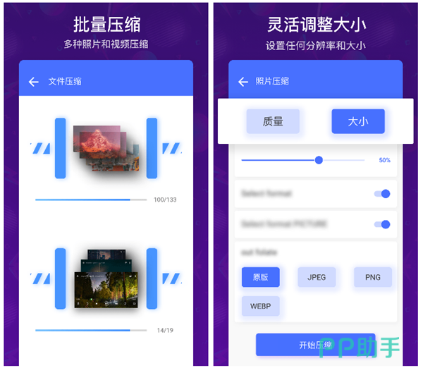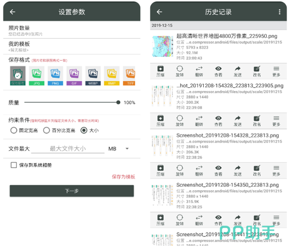 这是一款界面简单复古但是功能十分齐全的图片处理工具,其核心的功能就是对手机中的图像文件进行压缩,从达到缩小体积的效果。点击图片压缩功能之后支持批量的选择和处理,运转的速度也是非常快的。而且支持在处理结束之后一键进行文件的替换,从而达到为手机瘦身的效果。