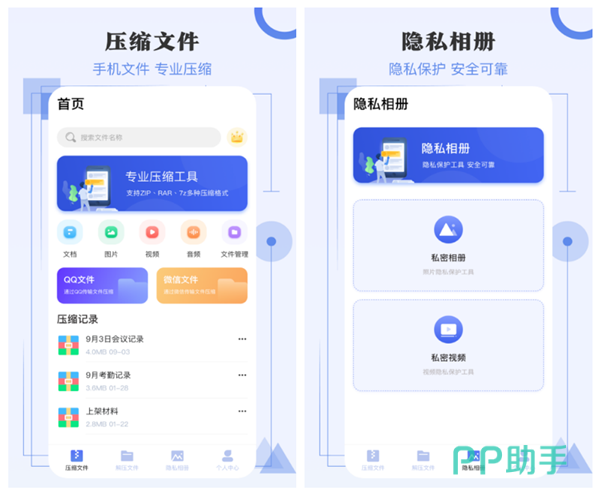相较于其他工具,这款软件带有更多的综合功能,比如说对手机中的文档、图片、音视频文件进行规整和检索,还可以一键勾选多个素材进行处理和压缩。另外,这款软件除了直接压缩图片的体积之外,还可以将多个文件打包,处理得速度也是非常快的。