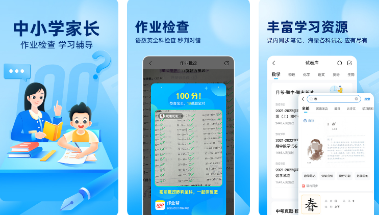 快对这款学习软件覆盖了小学,中学包括大学以上的题库,教辅解析和视频讲题都能教会你,遇到不会的知识点也不要慌,拿起手机扫一扫就能出现答案,很多家长在辅导孩子学习时,不知道对与错,这时就可以充分利用快对app中的一键检查,可以进行智能批改作业,妈妈省心,孩子用着也安心。