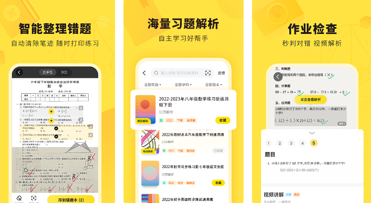 小猿搜题深受大家的喜爱,中小学家长都会用这款软件进行作业检查和辅导学习,全面包含了中小学所有题库,遇到难点不会的题型,只需要一部手机,把不会的题型拍下来或者扫一扫,立马就能出现答案和分析,更有专业的老师视频讲解,不会的地方可以重复观察,重复学习。