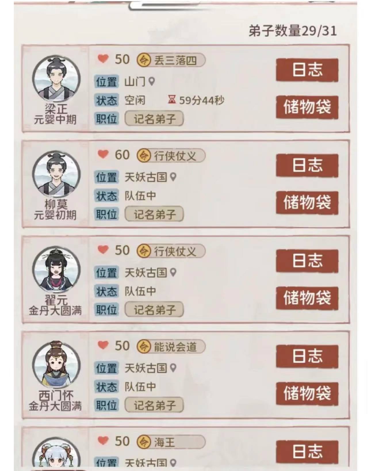 如果在地图中没有材料来招募自己心仪的弟子也没关系,游戏中每过一个月山门前就会有新的弟子来求见,这个时候小伙伴们可以选择自己心仪的弟子来招募到道馆中,小编推荐六维图属性高的,就越适合战斗,潜力会影响弟子的最高境界,魅力则会影响俘虏的成功率,而机缘也是十分重要的,机缘越高,在秘境中收获的时间越短,根骨想着弟子的攻击,气感影响这弟子的血量跟防御,悟性则表示参悟心法的成功率。