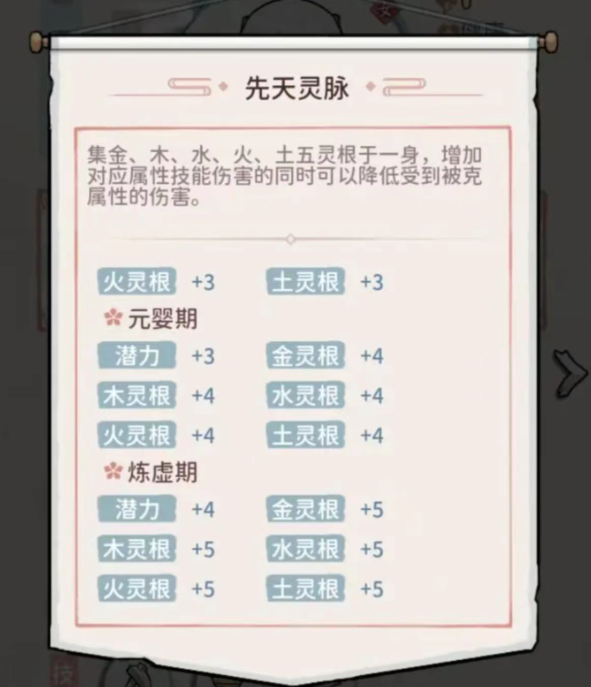 这里小编推荐推荐天赋搭配可以选用:第一个武道巅峰:加气感和根骨,这是一个纯战斗力的搭配,攻击非常强;主线人物推进到天剑州的时候,我们先去招募一个叫柳莫弟子,喜好美酒,送礼物到一百好感度就可以招募啦,招募完成之后,直接让队伍领先五千修为哦。;这样的好处是一人可顶三个极品:第三个是丹道宗师:这个加成是炼丹和悟性都极高,但是极品丹与下品丹的差距特别大注意区别。