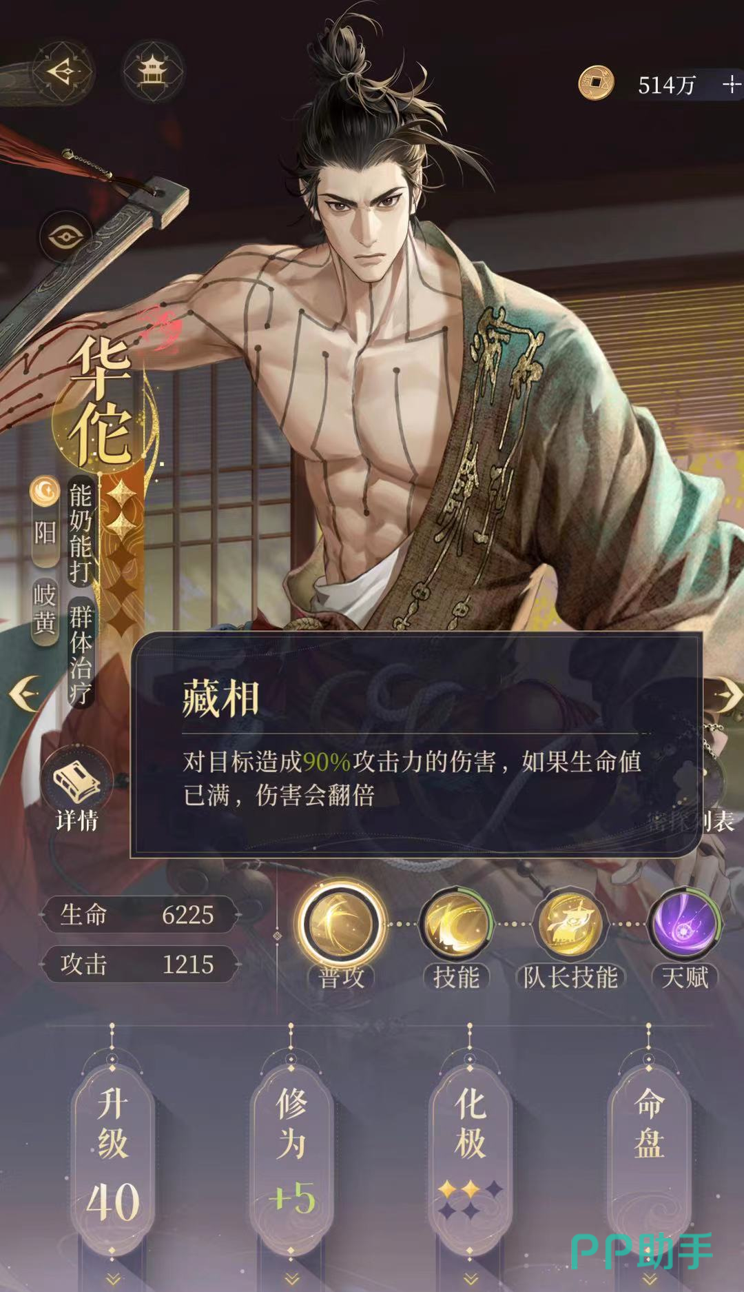 在输出方面有一个小技巧,华佗在对付阴属性的情报贩子有伤害加成,且满血的时候能造成2倍的伤害,因此在华佗攻击之前先用史子眇回一下血,可以输出更多。