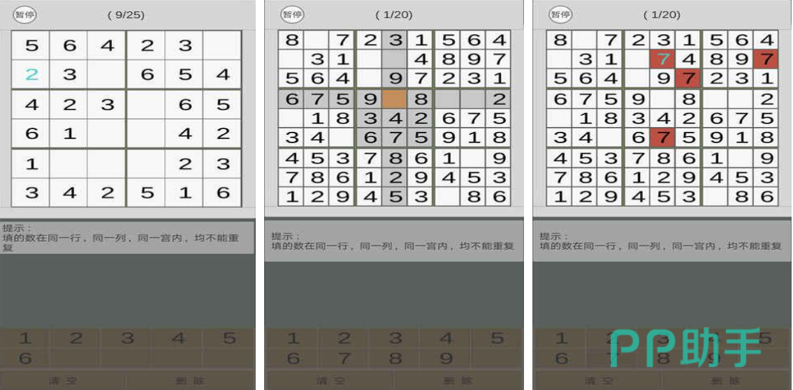 燃烧吧,各位的大脑。大家会在一个9×9的方格中填入数字,使得每一行、每一列和每个3×3的小方格都包含1到9这九个数字,而且不能重复。游戏开始时,会有一些方格已经给出了数字,要根据这些线索来推理出其他方格的数字。游戏的难度分为四种,分别是四宫格、六宫格、九宫格和骨灰级。四宫格和六宫格相对比较容易,适合新手入门。九宫格是最经典的玩法,也是最具挑战性的。骨灰级则是给高手准备的,需要运用更多的技巧和策略。