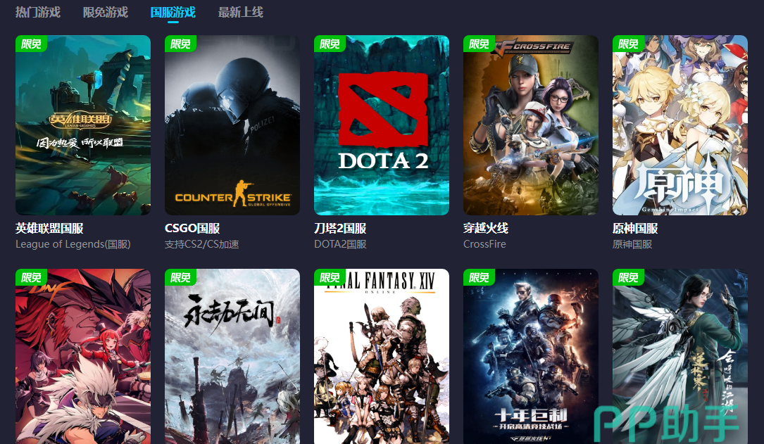 然后,对于一些非常热衷于国服游戏的玩家来说,大家依然可以在平台的游戏库内找到自己的归属地。在这里各种国服游戏任由大家选择,同样加入了当前的限免活动,各位也能够随时享受到加速服务。并且,大家还可以从中了解到不同时间段内上线的新游戏作品,这一点对很多时常关注游戏资讯的玩家非常友好。