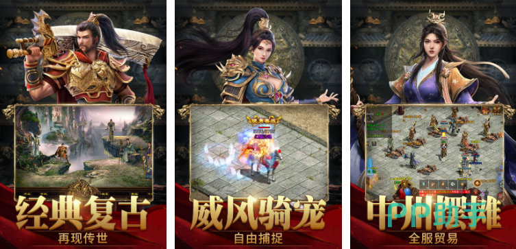 3D写实传世手游,游戏不仅还原了战法道传统三职业的经典,而且加入了更多装备元素,不再是简单的打怪升级,装备的组合也成为了游戏的一大特色玩法,无论是主战角色还是坐骑宠物都精心设计了专精套装,不肝不氪,轻松刷野便可以升级刷宝,战斗特效更有亮点,3D立体特效以及百种特色光效都将为你打造真实战场。