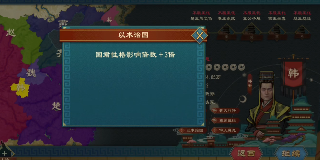 有用的性格有正面以及负面两种,首先来说一下正面的吧。正面的性格对于国家的君主来说相当重要,可以提升国家的稳定程度以及大臣们的信服度,但是这个性格也有一个弊端,那就是会让周围的国家渐渐不服你,每年受到的上供资源都会减少,可以说有利也有弊。
