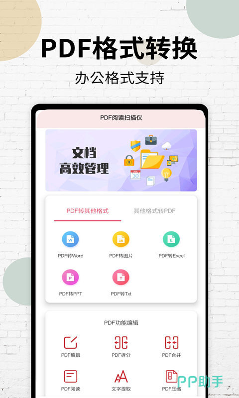 扫描图片转文字APP即可拍照转换文字,APP功能操作十分简单,还支持拍照识字,在首页有扫描文字的功能;当扫描好文档后,可以立即对PDF文档编辑处理,办公更加效率化,操作方便。
