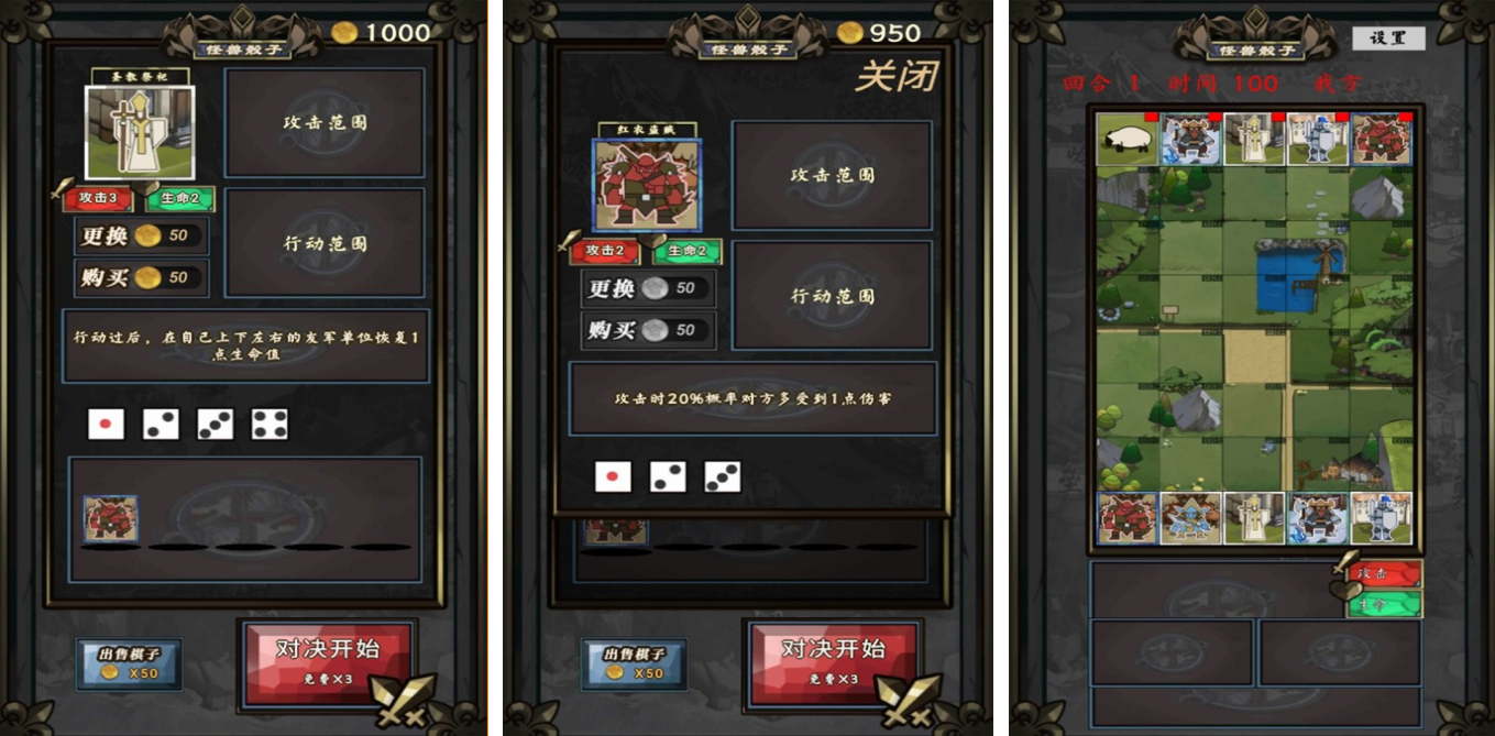 在这款游戏中,你每次对战都可以随机抽取不同的英雄人物,而且还可以用骰子的方式来决定抽取的顺序和数量。如果玩家不满意抽到的英雄,还可以把他们卖掉换取金币。游戏的玩法非常有趣,需要在一个方格地图上控制玩家的英雄前进,布置合理的阵型,利用每个英雄的特殊能力来打败对手。
