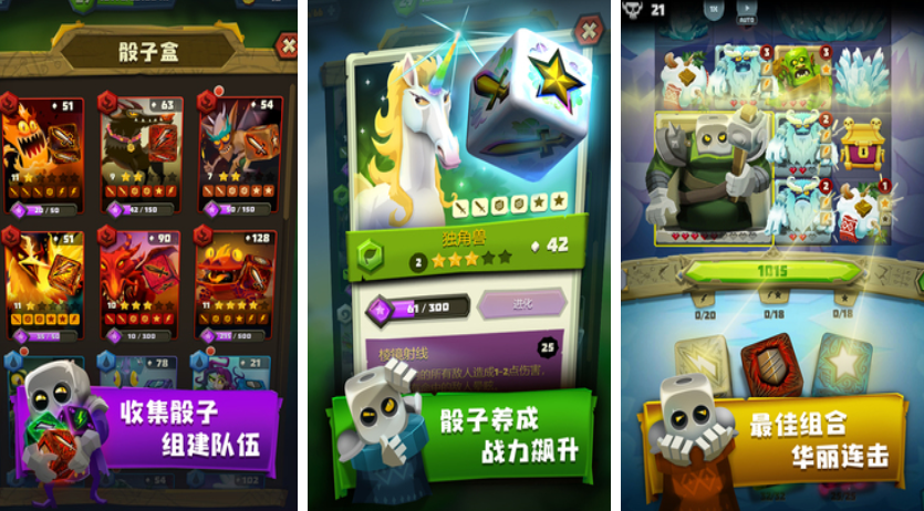 游戏以骰子为核心,需要通过不断抽取骰子来获得各种不同属性和技能的骰子人物,然后根据自己的策略和对手的情况来搭配出最佳的骰子阵容。游戏中的战斗充满了随机性和趣味性,可以通过收集和锁定相同的符号来发动强力的攻击或者防御,也可以利用骰子之间的相互作用来实现更多的可能性。游戏中的骰子分为不同的星级,通过重复抽取同一种骰子来提升其星级和能力,让普通的骰子变成强大的神器。