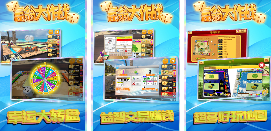 有没有想过成为一个百万富翁,体验一把财富的快感?在这款游戏中你就可以轻松实现这个愿望。游戏的玩法非常简单,只需要在虚拟的棋盘上掷骰子,根据上面对应的点数来走。棋盘上有各种不同的格子,有的可以让你获得买地建房等奖励,有的则会让玩家遭受损失甚至破产。玩家要运用玩家的智慧和运气,尽量避免陷阱,抢占优势,让对手无力回天。
