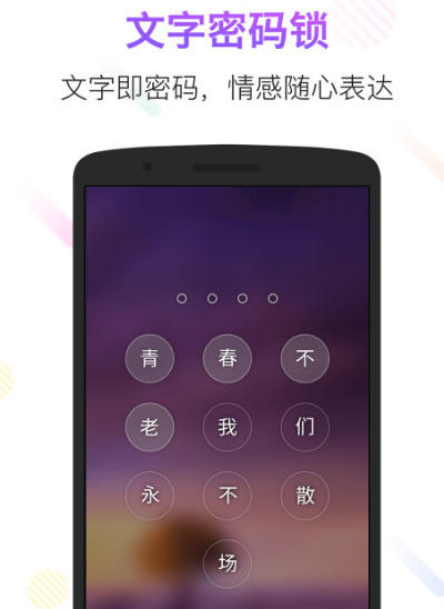 作为一款纯净绿色软件,拥有着小巧的体积以及简洁的画面,使用该软件,让手机变得更加炫酷。软件当中拥有很多风格以及主题,包括二次元、动漫、宠物、风景、明星等等。除了可以锁住手机,避免手机一直运行,避免耗电量较高,还可以锁住其他具有隐私的软件,包括QQ、微博、微信、游戏等等,无论想要锁住哪一个软件,都可以轻松操作。