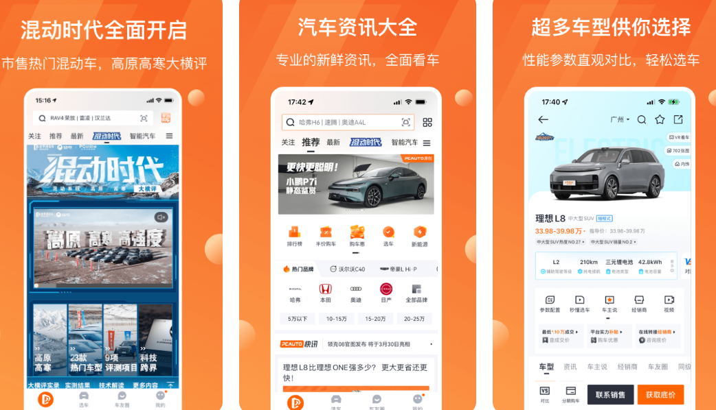 看车,买车,卖车,选车,这四样哪一样都不能丢下,每个环节都是环环相扣的,非常专业快捷,在太平洋汽车平台中拥有专业的新鲜资讯,可以帮助用户全方面的看车,性能参数直观对比,轻松选车,还可以快速知道价格。