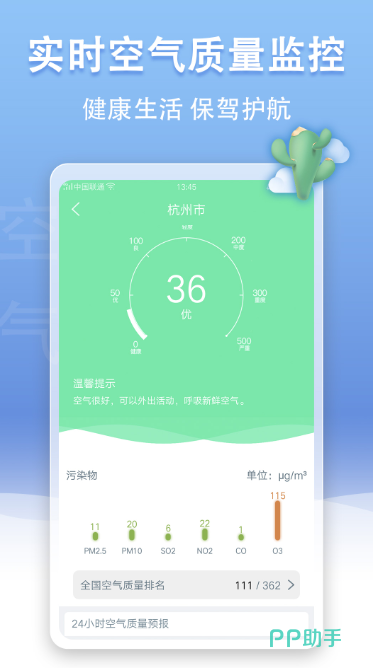 更小更快更好用!这款手机上的天气管家会为你提供国内超多城市的天气信息信息和空气质量信息,不管你是外出旅行还是出差办公用这款软件了解天气都是非常好的!它不仅能为你提供半月的天气信息还能提供空气质量、污染、气压等各项数据,还会相对的为你提供穿衣、运动建议,能够更方便你的出行!