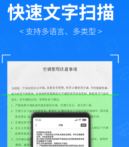 该软件也是给个可以扫描奥特曼卡片的软件,在使用的时候软件功能全部免费,里边既有扫描仪,也有拍照翻译,文字提取图片扫描等功能,主要利用的就是先进的识别技术,如果图片上面有文字的话,还可以将文字提取出来。如果上面的文字想要翻译成其他的语言,也支持12种语言之间的翻译,在众多的扫描翻译软件当中一直备受好评,扫描类型特别多。