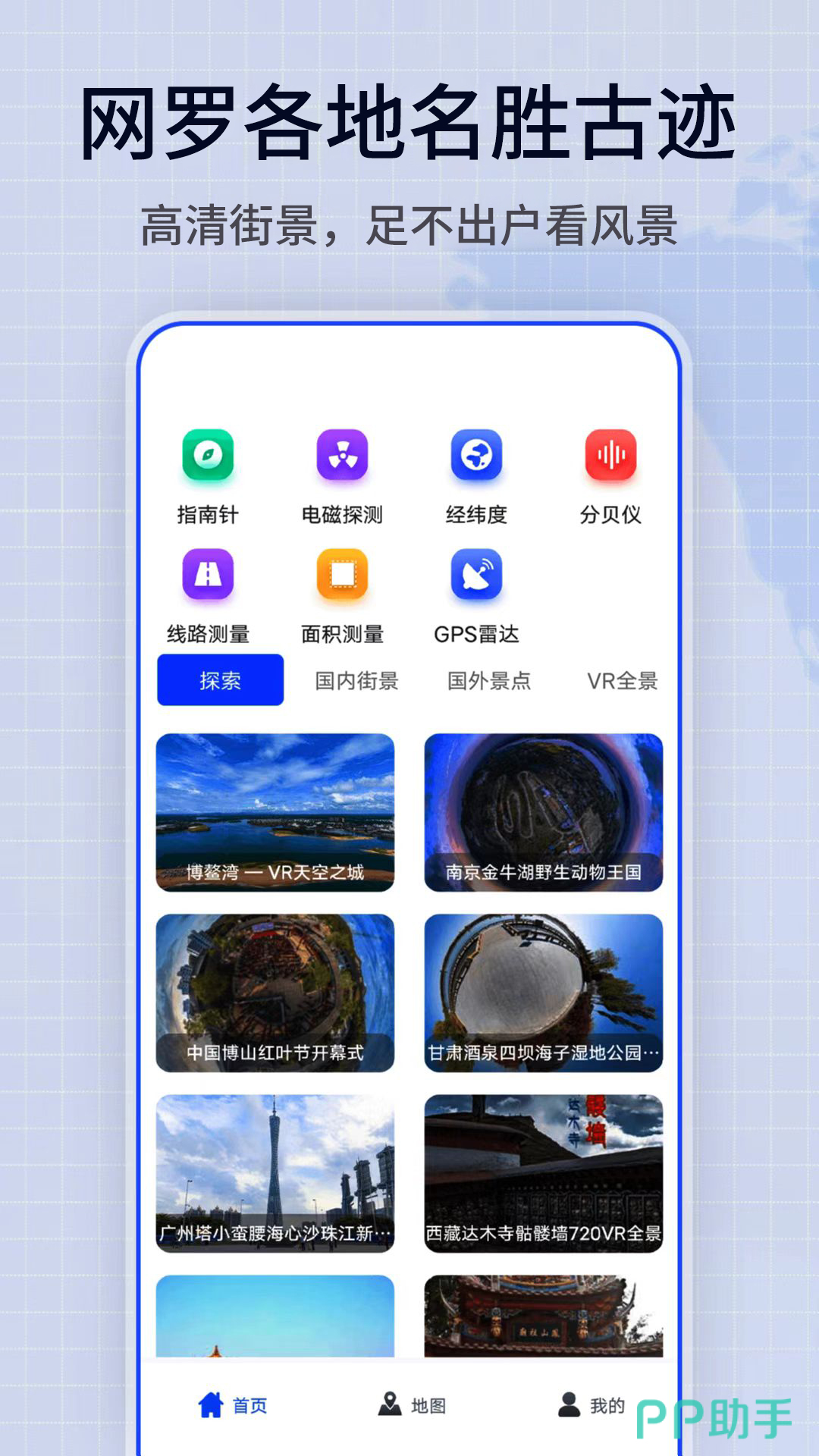 这是一款可以让用户足不出户就能领略当地风光的精彩地图。全新的高清街景地图,让用户拥有全视角的VR二感官体验。体验身临其境的快乐,还可以根据自己的喜好或者需求自主的进行。地理位置的选择和设计,全球的精彩景点都可以在这里观看。