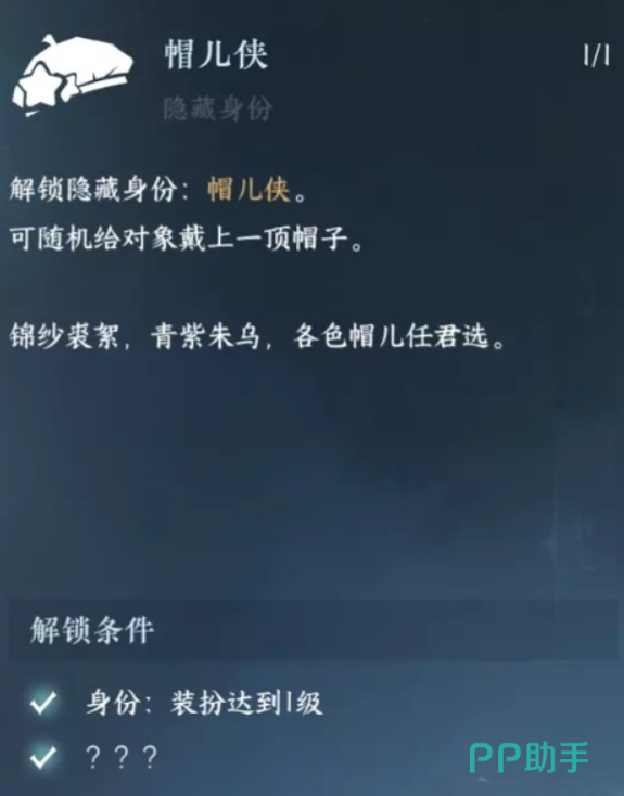 1. 帽儿侠:装扮1级,通过隐藏事件解锁,可随机为别人戴上一顶帽子。