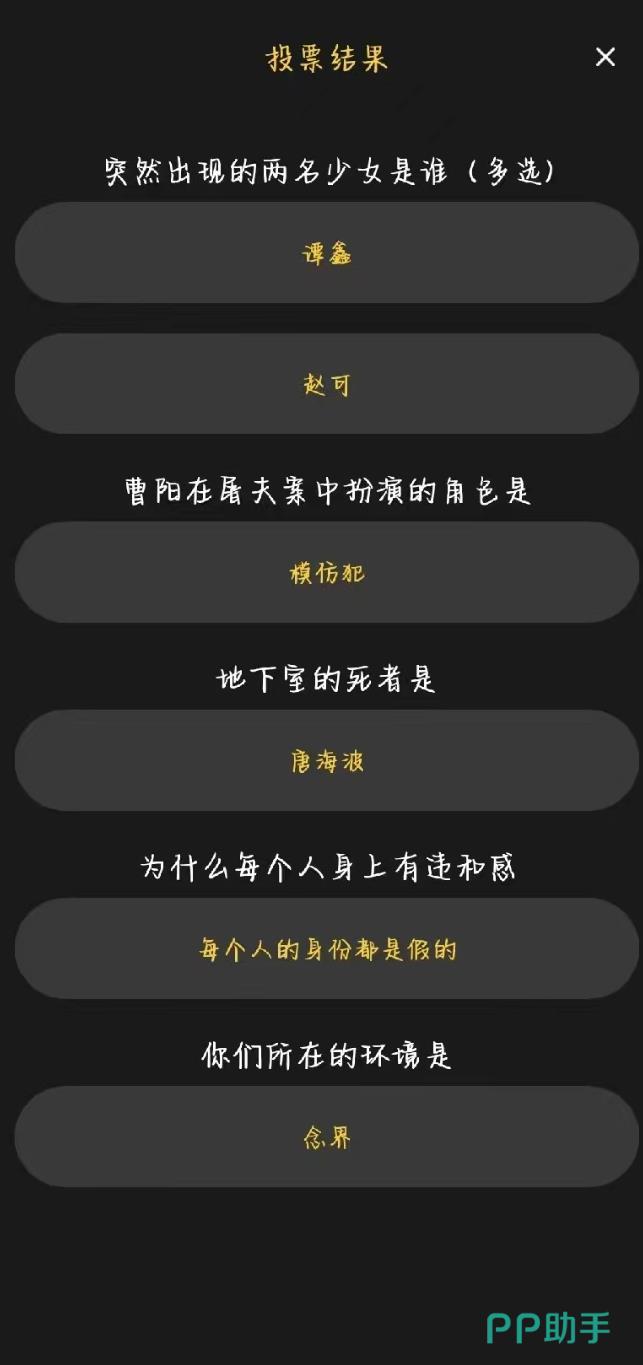 每个问题相对应的答案小编已经给各位说了,也帮助玩家知道每一个角色的记忆,这样才会更好的去找到线索,“百变大侦探夜半钟声真相是什么”也会更加清楚去推理,接下来选择这个剧本时就没有特别大的难度了。