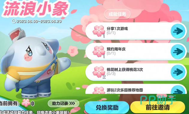 本次周年庆的第一个活动,便为获取到流浪小象哆哆,在活动期间,完成了活动任务就可以获得活动奖励桃花硬币,这些桃花硬币都可以送给小象,然后就可以解锁9个故事和领取特殊表情“颤巍巍”。如果赠送的桃花硬币达到10个,就可以去兑换典藏奖励流浪小象哆哆。