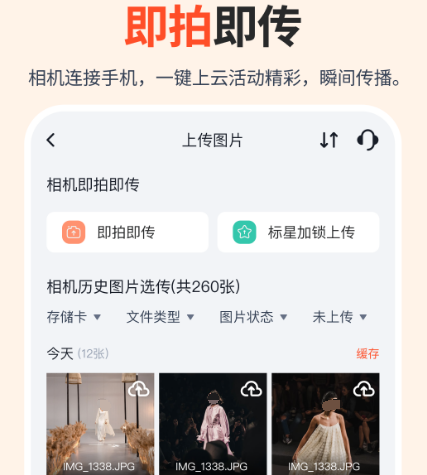 这就是一个备受摄影爱好者喜欢的软件,它里边主要就是起到一个传输图片的作用,比如单反相机的照片内容就可通过数据线的方式读取出来,然后把照片上传到云端,再分享到自己想要分享的平台就可以了。具有即拍即传实时的功能。对于想要上传摄影照片的人来说,也是手机当中必备的。