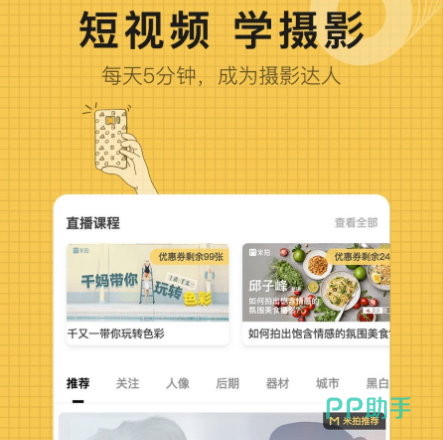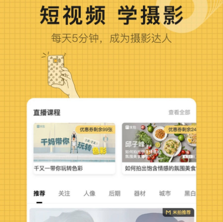 如果想要能够上传摄影作品的话,当然可下载这一个软件,它里面拥有着很多的用户和粉丝,既有职业摄影师,也有知名的摄影艺术家,甚至是爱好者,更有很多的网红,他们在这个软件当中都会拍摄出自己想要的内容。如果想要学习摄影的话,也可利用短视频的方式学到这样的事情,有很多大咖的教程,让每个用户了解更多的干货知识,还可预约同城的摄影师。