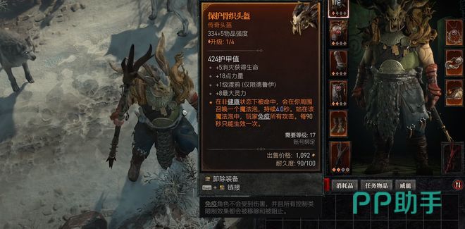 然后属于野蛮人的一把套装武器,武器拥有没增加一点努力就可以增加技能1%的伤害效果,不论是前期还是后期都可以给角色伤害带来很大的加成,如果大家玩德鲁伊的话,小编推荐风狼之喜,它附有物理、移动速度等等效果,并且可以将狼人的技能增加两点,使其变身成为真实的形态。