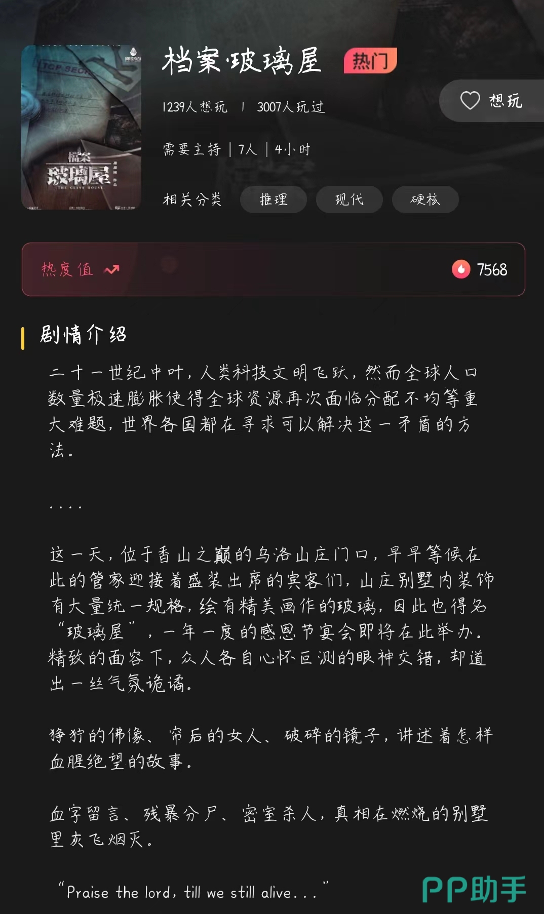 可以在DM模式中申请成为剧本的支持人,主持人并不会参加游戏的推理过程,在推理的过程中起到一个辅助的作用,能够帮助玩家更好的理解剧情,帮助玩家快速的找出凶手。所以主持人在推理游戏中是非常重要的,能够推进整个游戏的进程,让玩家不会沉浸在自己的故事剧情里,也帮助玩家分享其他的故事情节,总体有一个大概的了解。