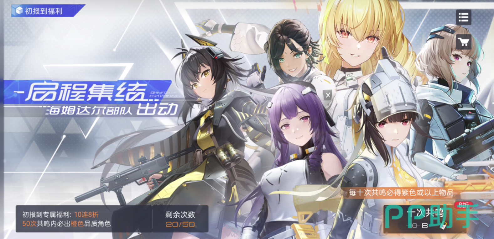 其中,新手玩家们都会有一个可以抽50次十连八折的新手卡池。作为初报道的福利,启辰集结海姆达尔部队出击,这个卡池基本上能出目前游戏当中绝大多数的角色,基本上内测时期,甚至除了活动一些角色以外,基本上所有的ssr都能抽到。