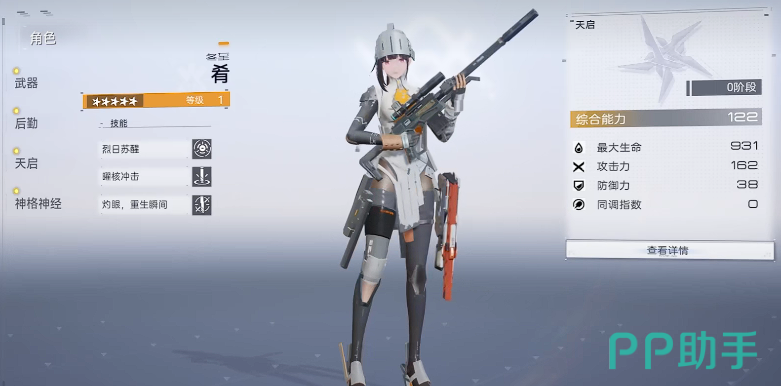 肴冬至,是目前新手池子当中最好用的架枪大狙。狙击手感很出色,而且蓄力过程中他的音效和手感非常好。甚至于在开技能蓄力射击的时候,有一种玩滋蹦的感觉。虽然可能面对近身作战方面略有缺点,但只要是他架起大局,蓄力起来了,在对付boss方面往往能起到恐怖性的压制的效果