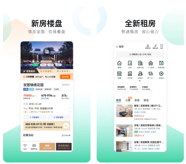 这是一款很大的房地产软件,它在平台上提供了二手房、新房和各类楼盘的信息,用户可以在这个平台上直接搜索到各种新房、商业办公房产、海外房产等相关信息,还可以查询到房源的首付,从而开启了找房模式。