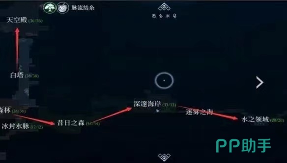 接着继续向右边继续行走,经过灰烬裂谷,向下可以到达火之领域,向右可以到达细雨森林,继续向右方,穿过昔日之森,到塔深邃海岸,迷雾之海,到达最后一站水之领域。