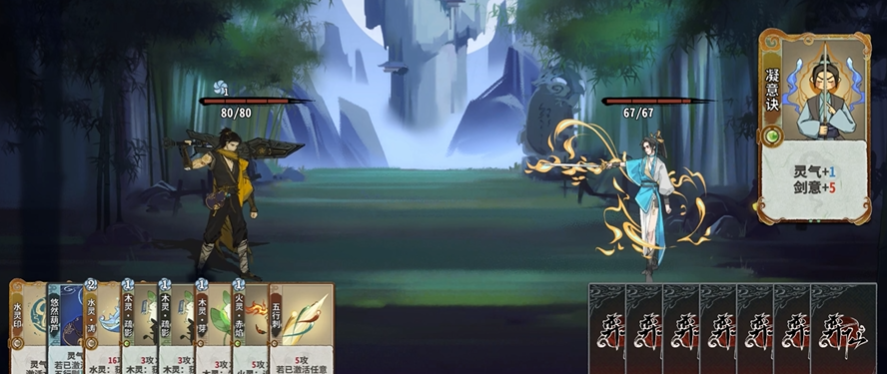 依据小编的上分经验,比较推荐的是剑意这个流派,这种玩法主要就是用最快的速度结束战斗,所以对于伤害的要求就会非常高,而剑意系列的卡牌都是伤害比较高的,只要再搭配上困仙曲、互体这种提供护盾或者增加生命值的卡牌,在大部分的对局当中都能做到很快结束战斗,并且获得胜利,非常适合新手玩家入坑使用。