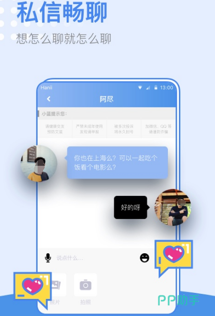 此聊天交友软件不仅可以进行打字聊天,同时还可以语音、视频等等,在这款软件上可以说悄悄话,让你结识同城的小伙伴们,互相聊天分享生活中的喜怒哀乐,想要脱单的朋友,也可以下载这款软件,找到你心目中的另一半。