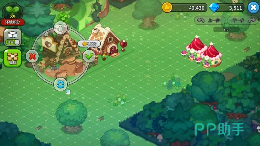 饼干人的经营玩法就是制作不同的饼干房屋,相同的材料可以升级,随着等级提升,可以造出更有细节和华丽的房子,王国内的土地十分充裕,玩家可以自由的建造各类建筑,后期随着级别的上升还可以减缩梦幻糖果盒、姜饼营地等设施,另外当玩家得到新饼干后,他们也可以加入建设和开荒的队伍,其余时间就会自由互动,还有机会在秋千、篝火等场景触发有趣的彩蛋动画,如果不想花太多时间在研究建筑方案上,还可以下载其他玩家提供的图纸,采用一键装修的快速方案。