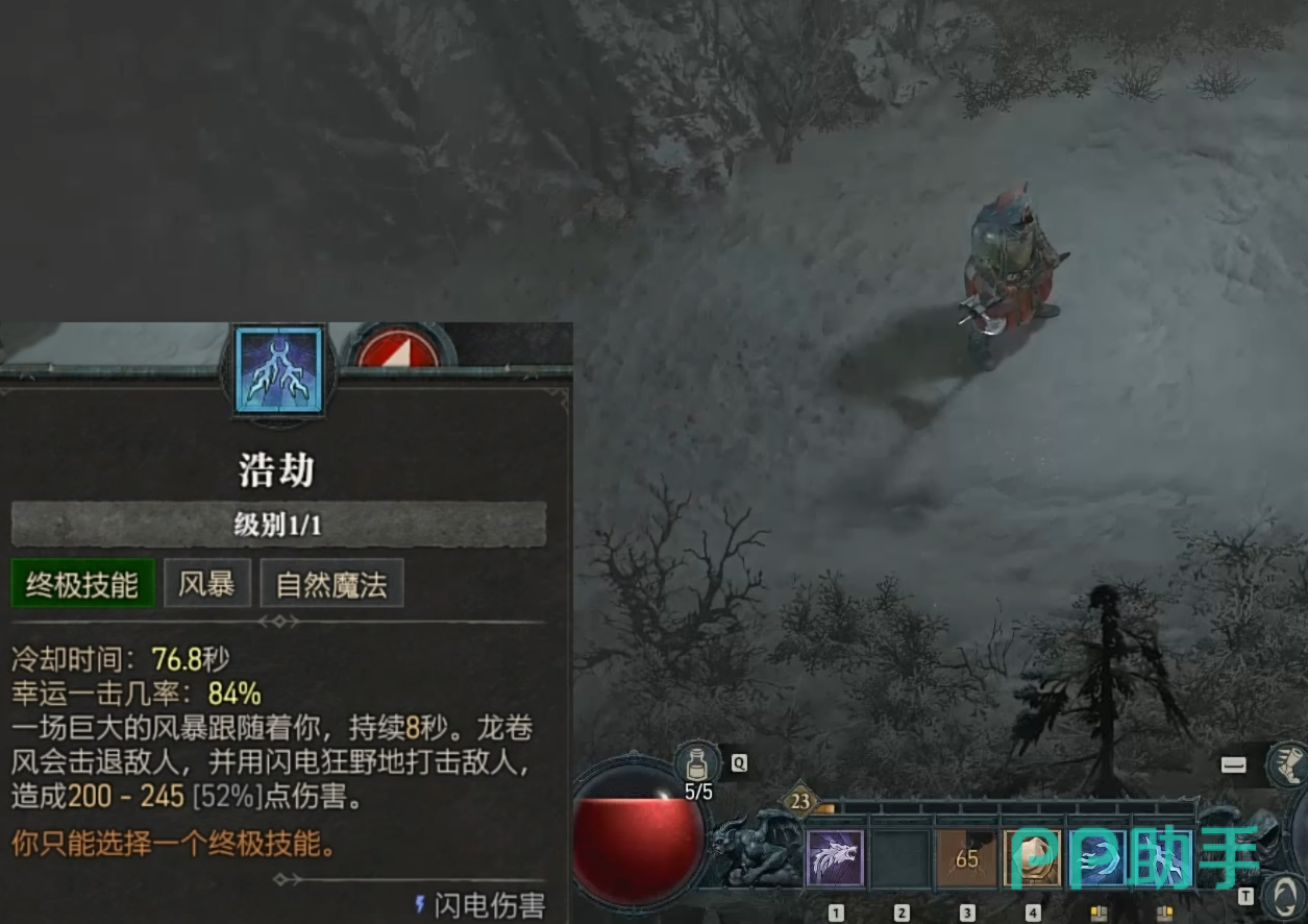 最后一个职业德鲁伊,第一个技能是召唤巨大的风暴,这个风暴会造成雷电伤害并将敌人电击退却,这个伤害会持续8S的时间。第二个技能是石化眩晕,对附近的敌人造成伤害并且造成晕眩3秒,并且在此期间造成的暴击伤害会提高25%,如果对象为精英,则昏迷和暴击伤害再延长一倍。最后的技能为撕咬,玩家会变成狼人并且获得免疫效果,在区域内会对敌人造成10次物理攻击,攻击可以享受暴击和吸血效果。