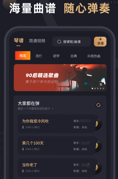 在很多人看来,练琴是非常困难的,尤其是找谱子练习,不知道从何下手,现在各种app纷纷上线,可以下载有谱么这一款软件帮助大家扒谱子,帮助大家找圈子,无论是平板还是手机都可以使用。其中拥有全网较全的琴谱,琴谱全部免费,没有收费现象,不仅仅有钢琴谱,还有吉他谱,以及尤克里里谱等等。